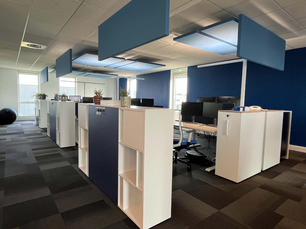 Aménagement des bureaux, salles de réunions, espace nomade, flex office, acoustiques et solutions éclairage